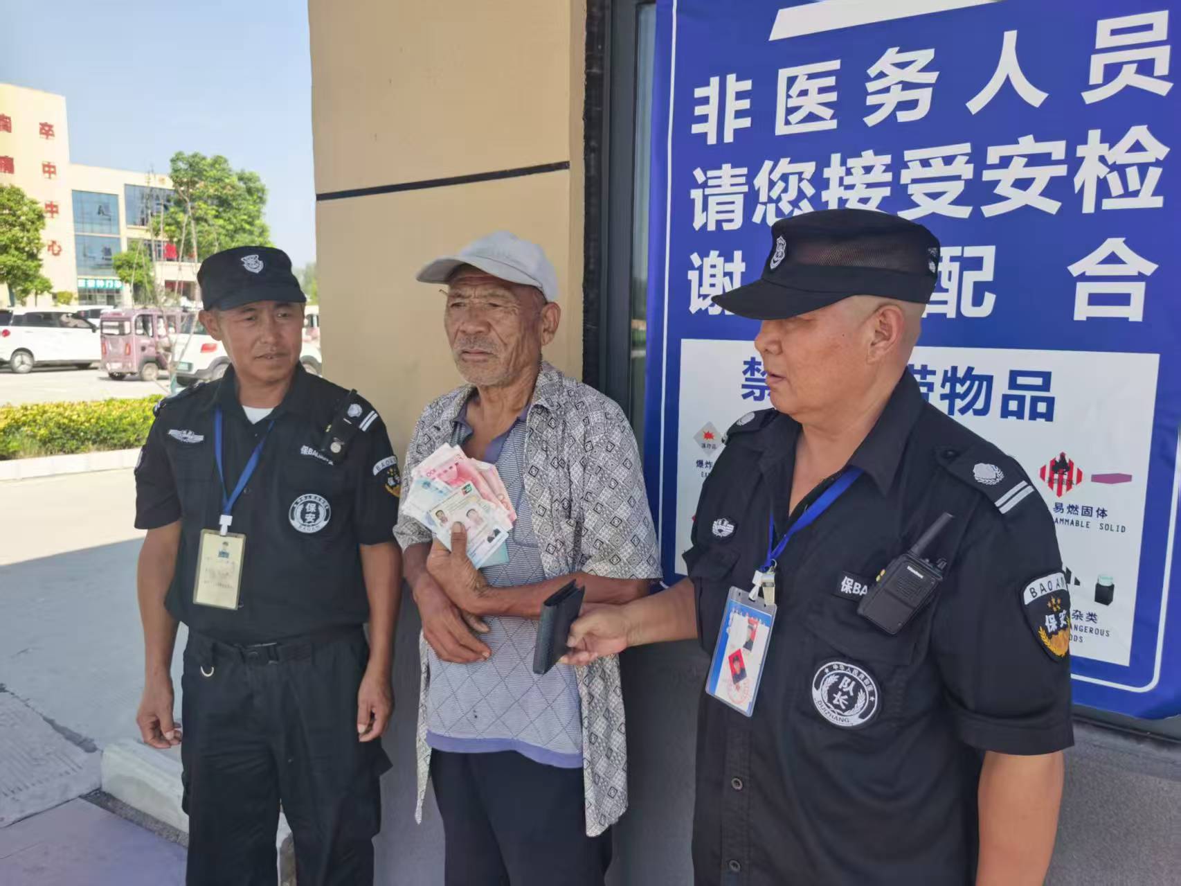 2025年8 月 26 日下午,新蔡縣分公司同安醫(yī)院崗點(diǎn)保安楊峰同志,在園區(qū)巡邏時(shí),經(jīng)過電動(dòng)車充電車棚,查看有無違規(guī)充電安全隱患想象,看到一個(gè)錢包并且證件散落在地上,他第一時(shí)間上報(bào)給帶班班組長(zhǎng),同班組長(zhǎng)一起撿起錢包,里面有多張身份證社??ㄒ约艾F(xiàn)金。匯報(bào)告給保衛(wèi)科負(fù)責(zé)人,并把照片發(fā)到醫(yī)院各科室工作群尋找失主。保安隊(duì)員妥善保管失主物品,多方打聽,積極協(xié)助尋找失主,最終于第二天找到看病的失主徐先生,將財(cái)物完整歸還失主徐先生。徐先生為表感激之情,特贈(zèng)錦旗一面,以表彰楊峰同志拾金不昧的高尚品德、盡職盡責(zé)的優(yōu)秀品質(zhì)。
