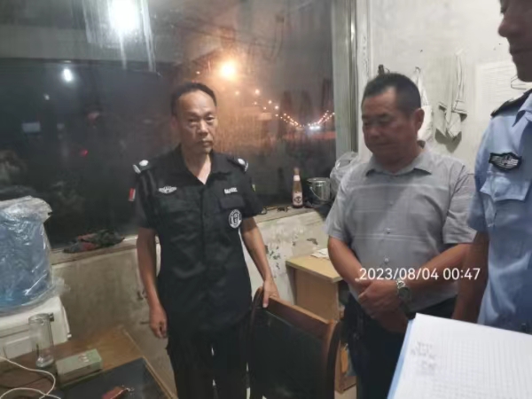 為保障客戶(hù)單位的安全,提高隊員夜間值崗的警惕性,2023年8月3日夜間平輿分公司黃經(jīng)理帶領(lǐng)督察隊、辦公室人員對各崗點(diǎn)突擊夜查。