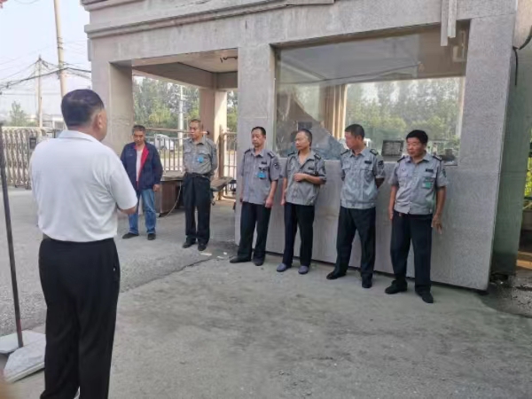 為提高用人單位對我們工作的認可,隊員的團隊協(xié)作能力,2023年8月10日早晨6:50,黃經(jīng)理帶隊到天水湖,永盛皮革崗點(diǎn)對隊員進(jìn)行晨會(huì )培訓及工作要求,對近期隊員的工作情況進(jìn)行了批評教育,加之管理人員工作未能做到位,黃經(jīng)理要求在今后工作中各崗點(diǎn)隊員在工作中,嚴格按照公司的規章制度和用人單位的要求進(jìn)行工作,對待工作履職盡責,管理人員要以身作則,加強管理,提高隊員的工作能力和隊伍的整體素質(zhì),更好的完成用人單位交給我們的工作。