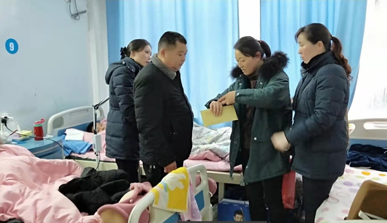 丁寧為汝南分公司派駐汝南縣農商銀行官莊支行大堂經(jīng)理,其兒子因瑣事在學(xué)校被同學(xué)砍傷,現在駐馬店市仁和創(chuàng )傷顯微外科醫院治療,因所需醫療費用較多,給這個(gè)本來(lái)就不富裕的家庭雪上加霜。分公司經(jīng)理王瀟得知該情況后,立即召開(kāi)公司領(lǐng)導班子會(huì )議,經(jīng)研究決定給予丁寧一定的慰問(wèn)金,并號召公司員工給丁寧捐款。當慰問(wèn)人員帶著(zhù)公司的關(guān)懷和慰問(wèn)趕到醫院后,丁寧十分感動(dòng),表示今后會(huì )加倍努力工作,為公司發(fā)展盡自己的一份綿薄之力。