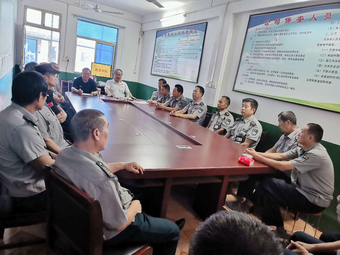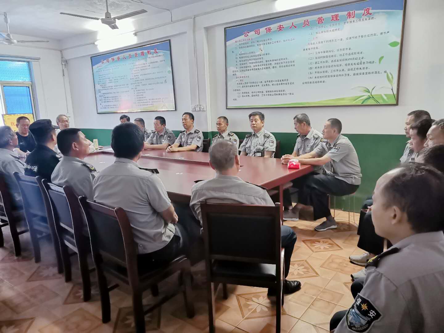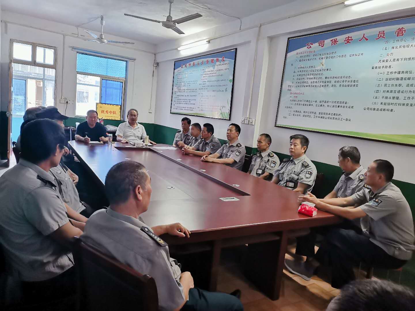 為規范保安人員的著(zhù)裝提高保安人員的整體素質(zhì),樹(shù)立公司良好的形象,促進(jìn)公司規范化管理,2020年7月21日,公司對鄉區崗點(diǎn)的保安人員,召開(kāi)了會(huì )議。