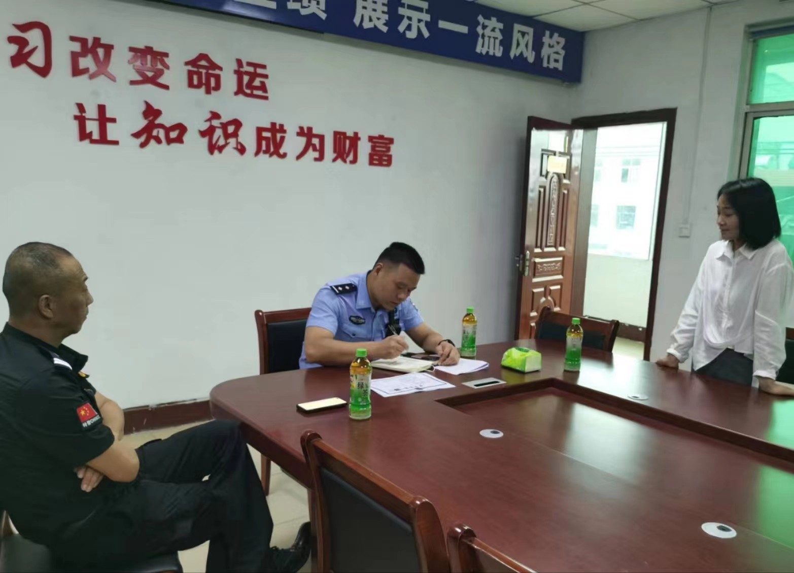 2022年8月27日下午治安大隊宋隊及巡特警陳隊兩人蒞臨新蔡縣分公司檢查指導工作。兩人先是參觀(guān)了公司,隨后在會(huì )議室詳細詢(xún)問(wèn)了公司進(jìn)來(lái)的發(fā)展情況,人員數量及開(kāi)展培訓情況。辦公室李嚴詳細解答。