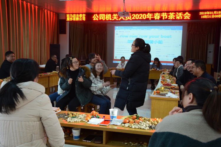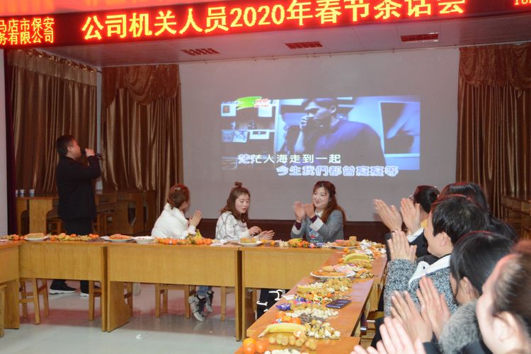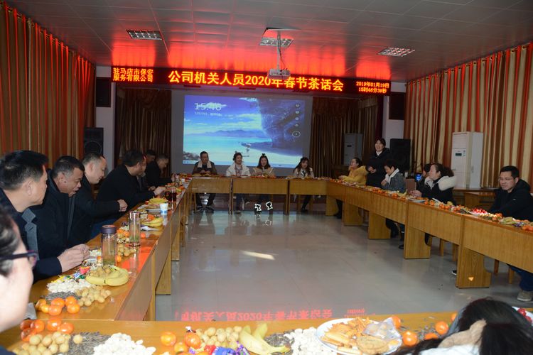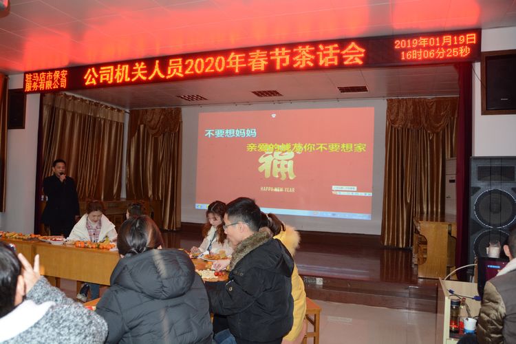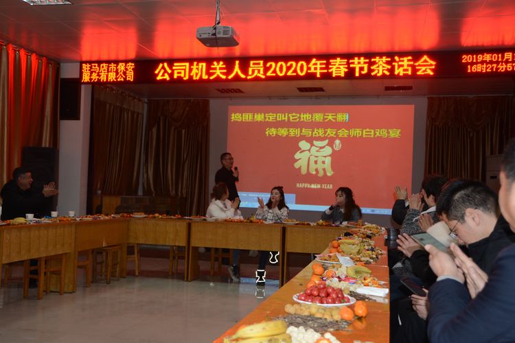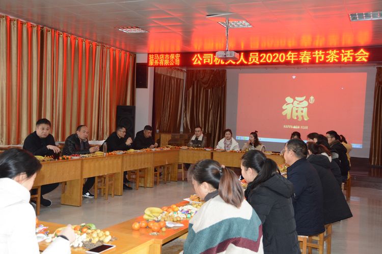 1月19日下午,在新春佳節即將到來(lái)之際,駐馬店市保安服務(wù)有限公司在多功能會(huì )議室舉辦公司機關(guān)人員2020年春節茶話(huà)會(huì )。黨總支書(shū)記、董事長(cháng)姚紅衛在黨總支副書(shū)記魏煒、總經(jīng)理張建輝及公司其他領(lǐng)導的陪同下與機關(guān)管理人員歡聚一堂,共敘情誼,共賀新春。